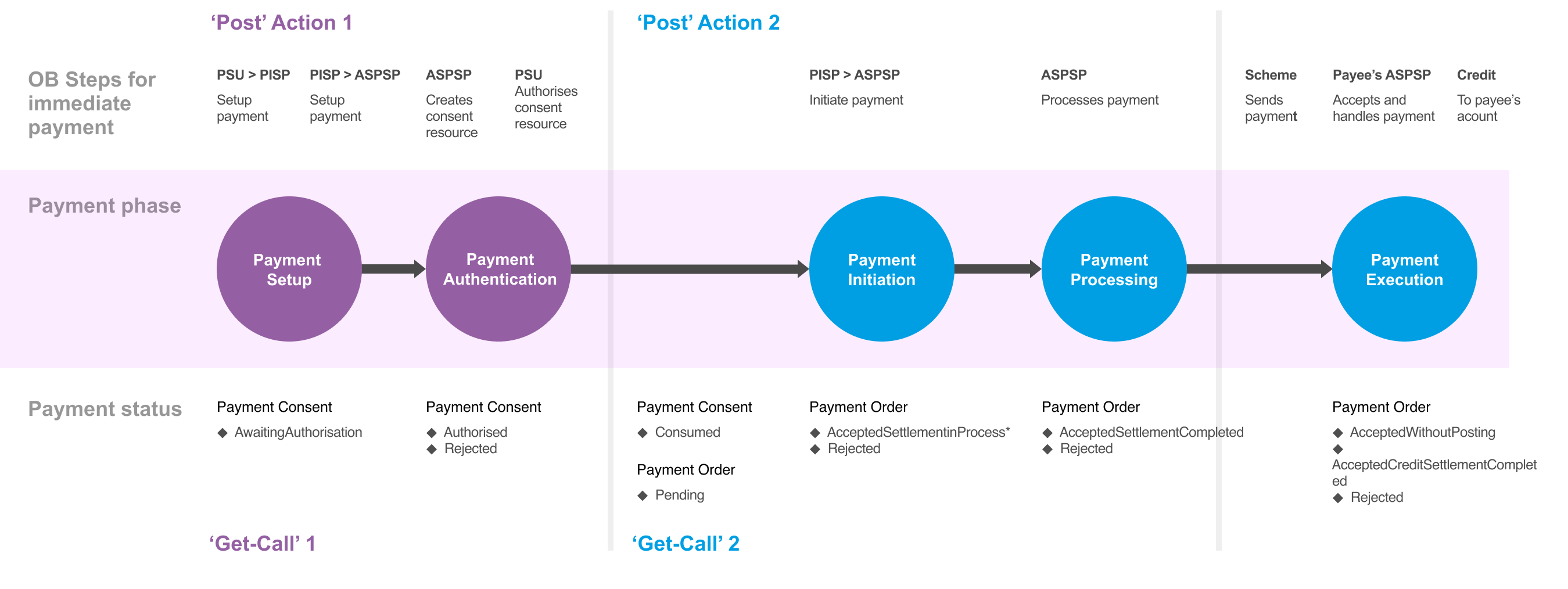 Other pages in this section Payment Status Restored- ignore Themes Identified from Consumer & SME Research CX Guidelines Consultation – Research Data Deep Linking for App-to-App Redirection Payment Initiation Services (PIS) Parameters & Considerations Card-Specific Permissions & Data Clusters for AIS Journeys TPP Permissions & CASS Considerations Contingent Reimbursement Model Refund Payment Fulfillment Information flow – Payment Status Information flow Payment Status (Backup) Information flow Payment Status – SO Transaction Risk Indicators (TRI) definitions and guidance Common Terminology – Preferred Terms and Language Common Error Scenarios – Preferred Status and Reasons 90-Days Re-authentication (delegated SCA) Examples of VRP use cases Payment Status (old copy) Payment Status New (backup) Read/Write API Specification – Standard Error Codes