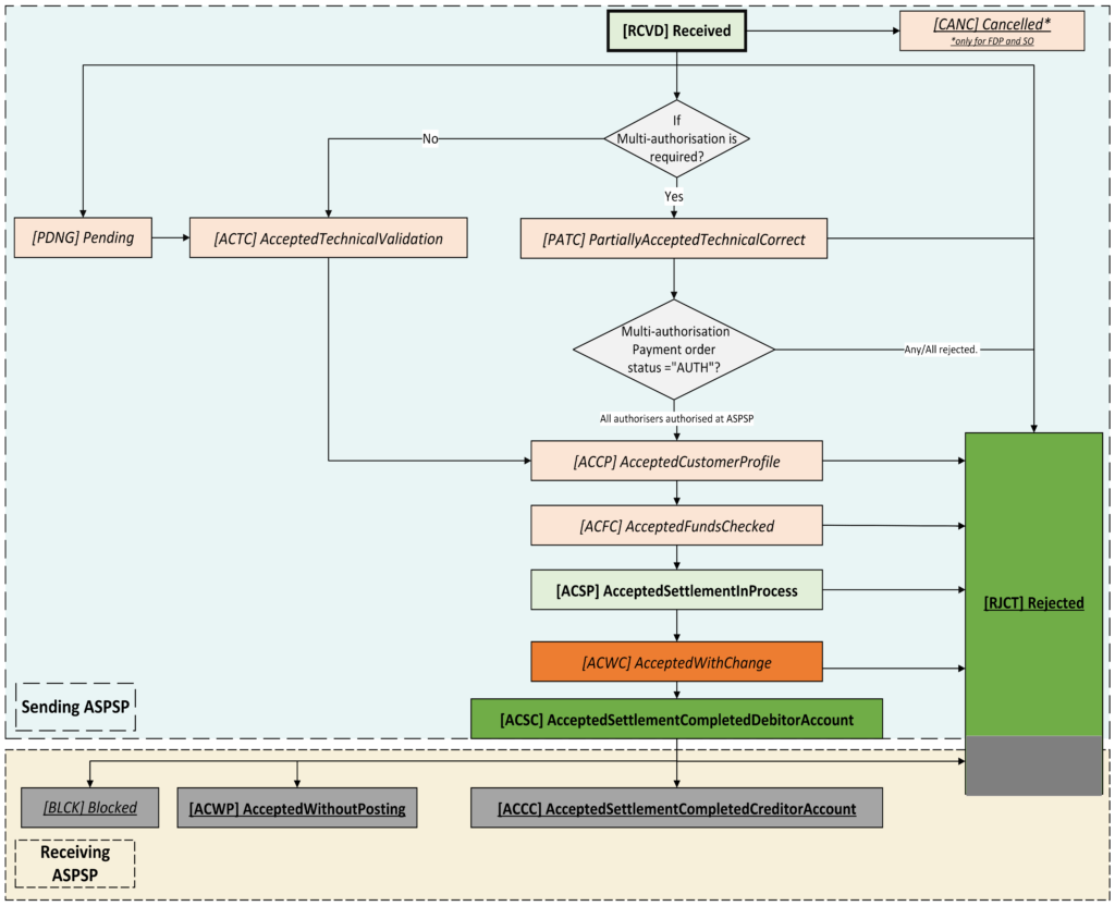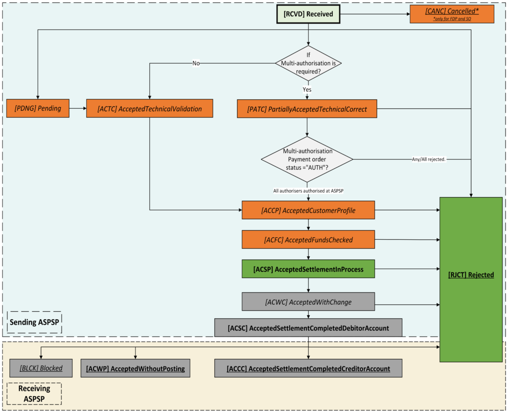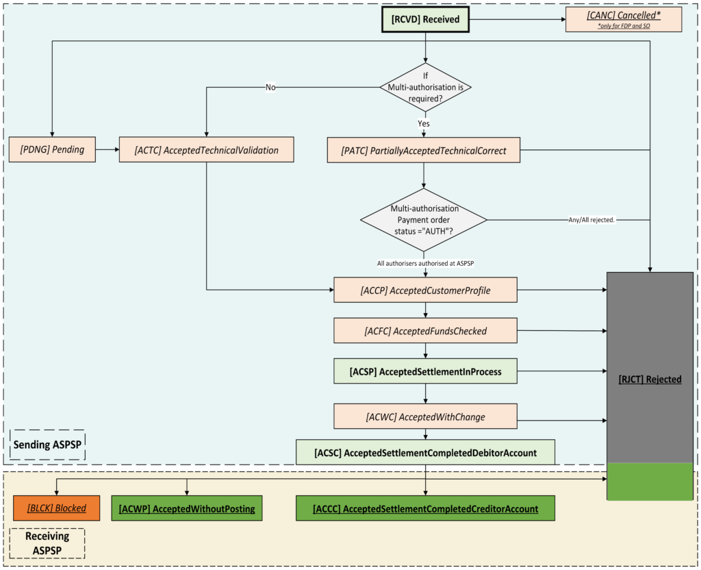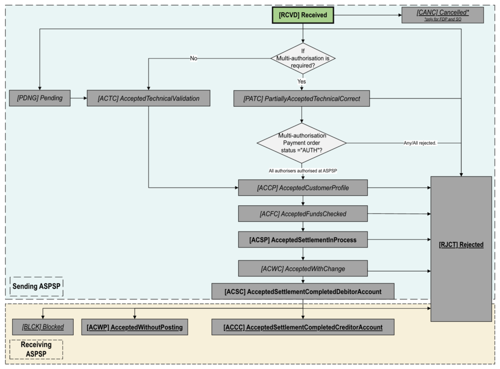 The Open Banking Standard has been updated to allow ASPSPs to provide PISPs with enhanced payment status information for supported payment types (as described in the User Journey section below) , including: Status any time after staging the payment and submission. Meaningful status messages and reasons why the staged payment or submitted payment is stuck in a particular state. Confirmation that the payment order has been received and executed. Enriched list of payment status messages and reasons for failures through the initiation, processing and execution stages. List of faster payment reasons for failure post execution at the receiving bank (other payment schemes not provided).