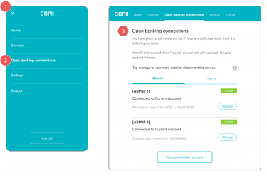 CBPII Consent Dashboard Dashboards play an important role in clearly and transparently setting out what a PSU has provided consent for a CBPII to do on their behalf. PSUs may have consented to Confirmation of Funds (CoF) access to several accounts from one or more ASPSPs. CBPIIs must provide PSUs with a Dashboard to view and revoke these consents. Learn more