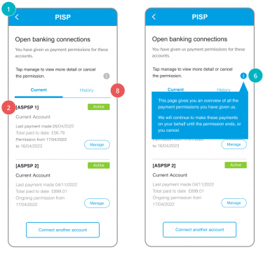 PIS VRP Access Dashboard ASPSPs must provide PSUs with a facility to view and revoke ongoing VRP access that they have given to any PISP, for each account held at that ASPSP. The PSU may have consented to make payments from several accounts through a single PISP. Dashboards play an important role in setting out what accounts the PSU has given permissions for, and the rules associated. Learn more