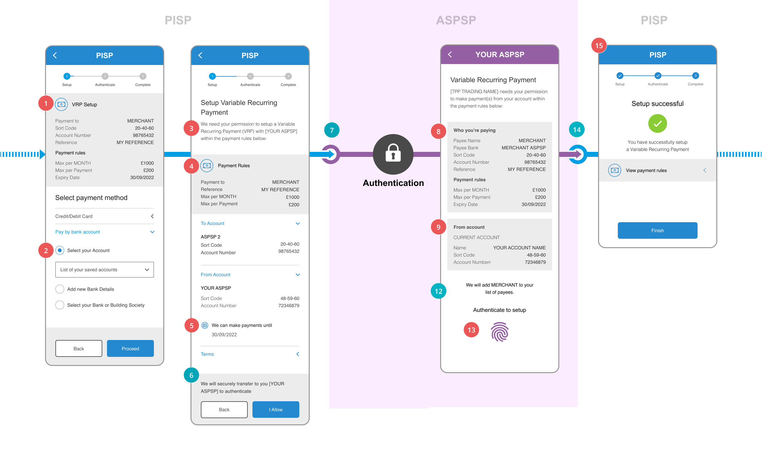 This core journey will enable the PISP to initiate an ongoing variable recurring payment(s) within the agreed set of consent parameter(s) which will result in a single domestic payment being processed by the ASPSPs as a Single Immediate Payment (SIP) via Faster Payments where the customer is not required to be in session for consequent payments.