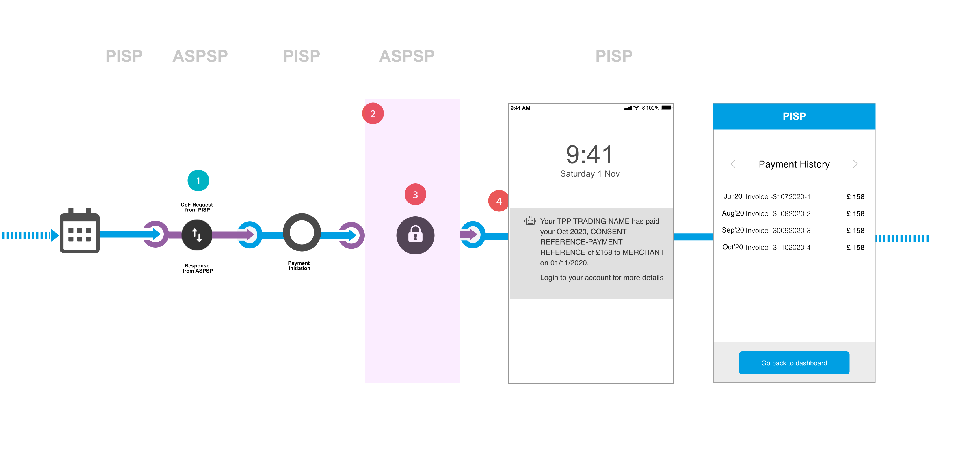 Other pages in this section Account selection at PISP Account Selection at PISP – Supplementary Info Account Selection at ASPSP Scheduled Payments – Future Dated Standing Orders International Payments Bulk / Batch Payments Multi-authorisation Payments Confirmation of Funds for PISP – Y/N Response Payment Refunds VRP Payments with an SCA exemption VRP Payments under Sweeping Access VRP Payments with delegated SCA VRP Consent Dashboard & Revocation VRP – Access Dashboard & Revocation