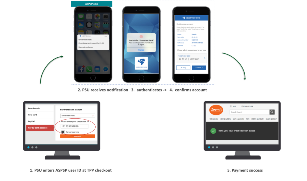 In order for ASPSPs to allow the PSU to be able to authenticate through the ASPSP app and support the wide range of TPP use cases, the OBIE standards must allow for all of the above-decoupled authentication methods if the PSU is not consuming the TPP service on the same device which has their ASPSP app (Out of Band).