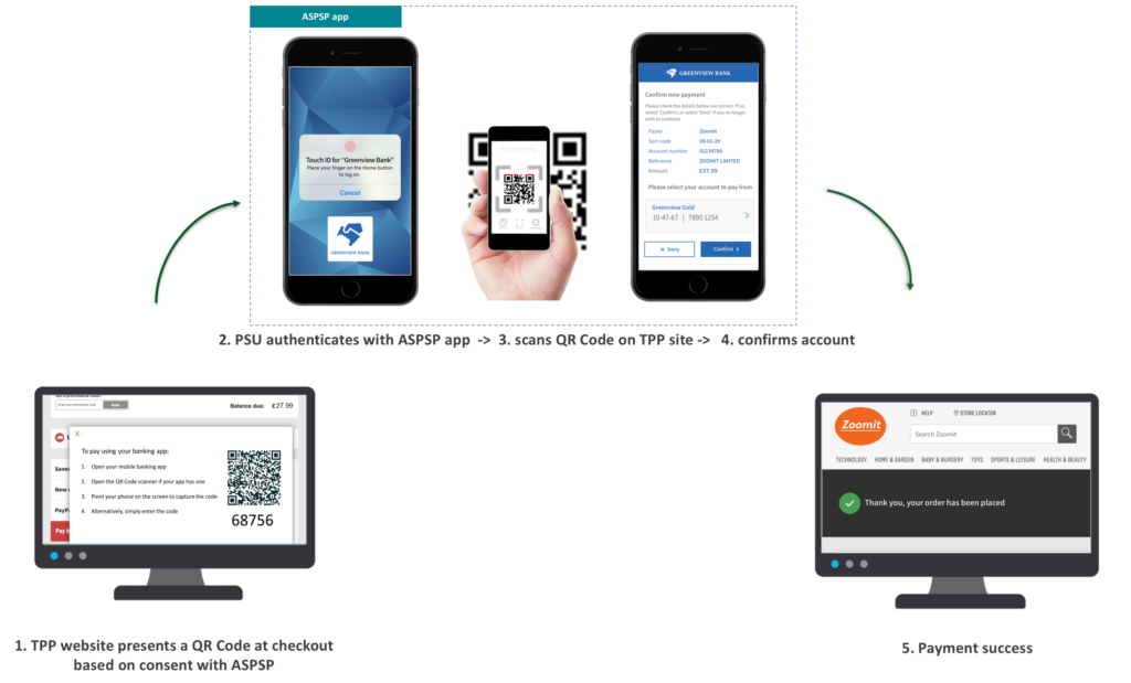 4. PSU uses the TPP website/app to scan or enter the code (TPP stages consent with ASPSP in the background).